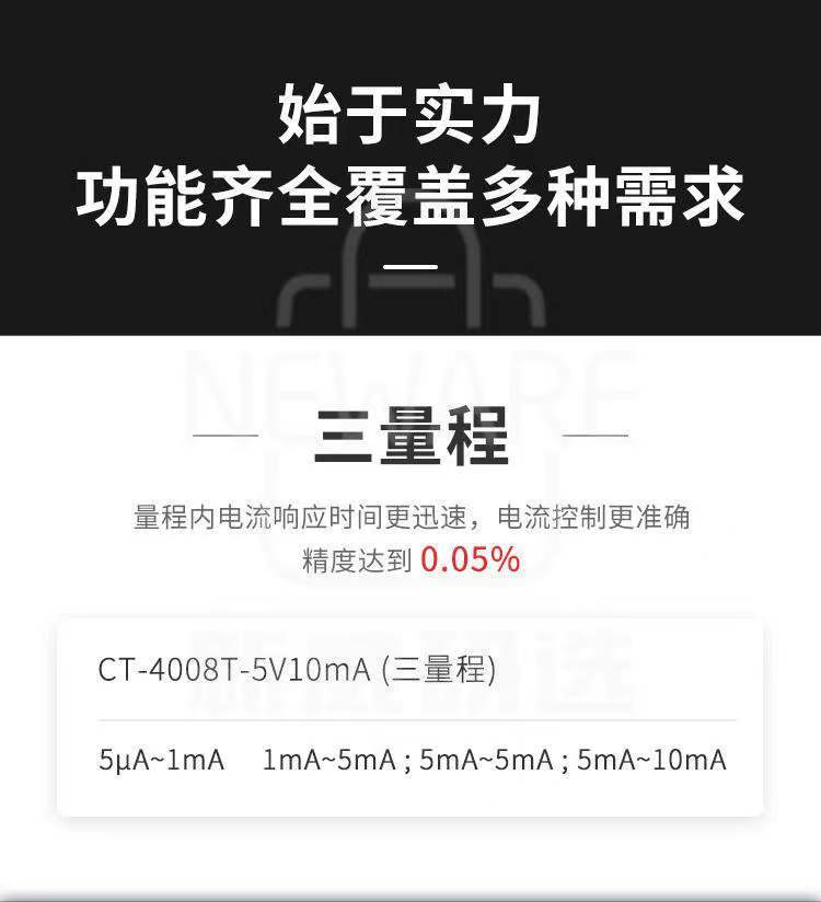 电流 | 每通道输出范围 | 量程一:5uA~1mA; ?量程二:1mA~5mA; ?量程二:5mA~10mA | |||||||