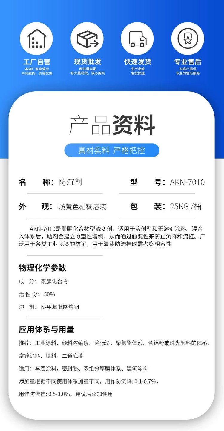 用途范围用于油性涂料、油墨体系,解决防沉、防流挂问题