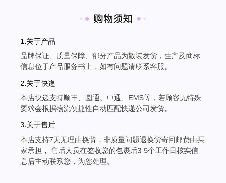售后服务 | 7天无理由换货 | ||