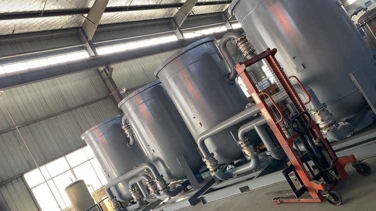 氧气缓冲罐用于均衡从氮、氧分离系统分离出来的氧气的压力和纯度,保证连续供给氧气稳定。同时,在吸附塔进行工作切换后,它将本身的部分气体回充吸附塔,一方面帮助吸附塔升压,另外也起到保护床层的作用,在设备工作过程中起到极重要的工艺辅助作用。