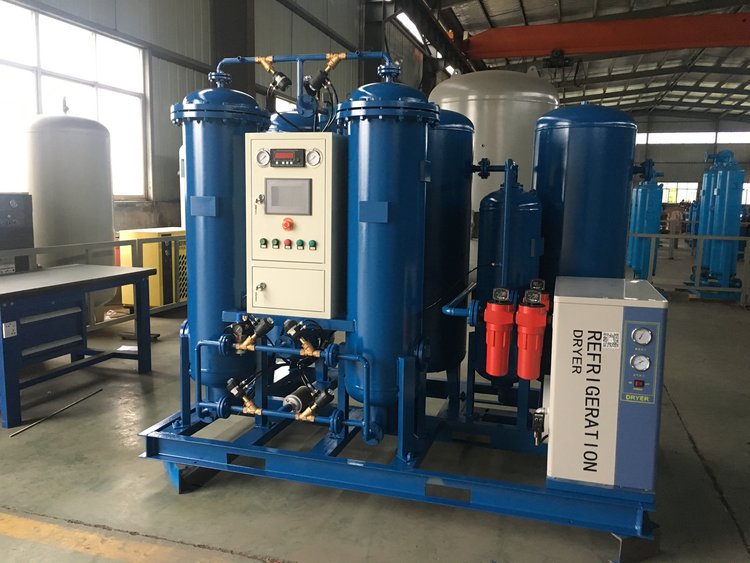 空气储罐的作用是:降低气流脉动,起缓冲作用;从而减小系统压力波动,使压缩空气平稳地通过压缩空气净化组件,以便充分除去油水杂质,减轻后续PSA氧氮分离装置的负荷。同时,在吸附塔进行工作切换时,它也为PSA氧氮分离装置提供短时间内迅速升压所需的大量压缩空气,使吸附塔内压力很快上升到工作压力,保证了设备可靠稳定的运行。