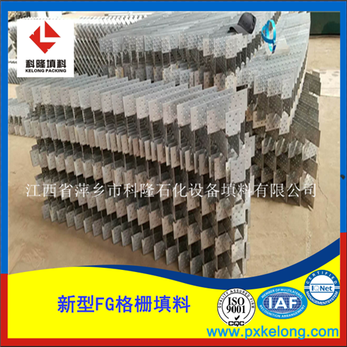 金属FG格栅填料为了提高塔的通量、改善两相的流道、减小沟流、壁流和轴向返混等不良影响以传质效率和抗堵塞、抗结焦性能,对目前规整填料的结构进行优化设计。