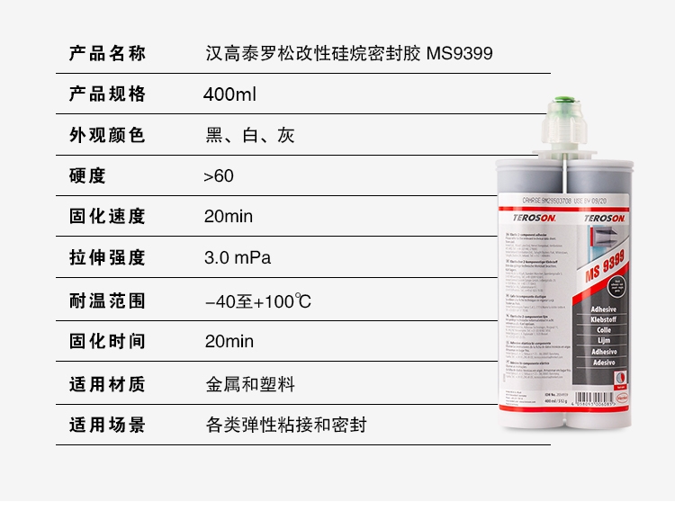 汉高泰罗松MS9399双组份改性硅烷密封胶车身修复修补胶柔性高粘度