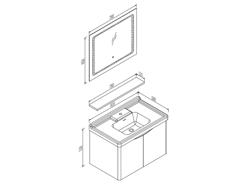 组合形式 | 实木多层板柜体 一体陶瓷盆 LED镜子 | ||