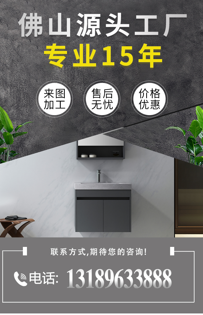 多层实木免漆板洗手盆水泥灰岩板浴室柜组合方形陶瓷台下盆