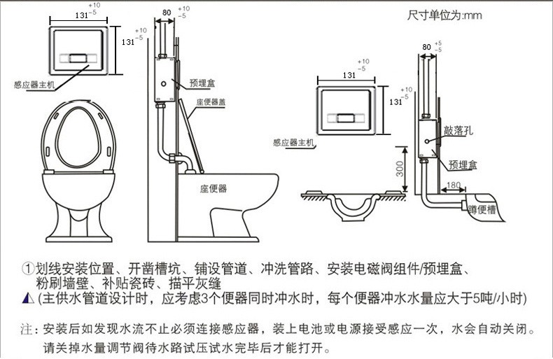 安装方式 | 暗装入墙(常用)或明装挂墙 | ||