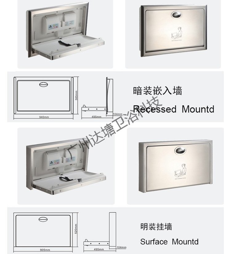 304不锈钢婴儿尿布台第三卫生间宝宝护理床明装暗装壁挂可折叠