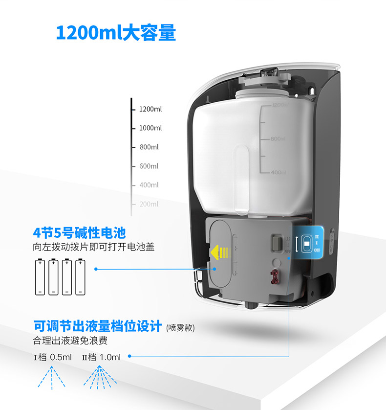 1000/1200ml自动皂液器给皂机视液机手部清洁机酒精分配喷雾器 是否支持加工定制 | 是 | ||