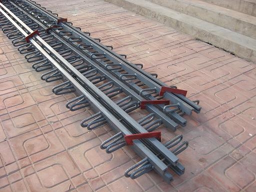 板式橡胶制品这一类伸缩装置,很难满足大位移量的要求;钢制型的伸缩装置,很难做到密封不透水,而且容易造成对车辆的冲击,影响车辆的行驶性。因此,出现了利用吸震缓冲性能好又容易做到密封的橡胶材料,与强度高性能好的异型钢材组合的,在大位移量情况下能承受车辆荷载的各类型模数支承式(模数式)桥梁伸缩装置系列。