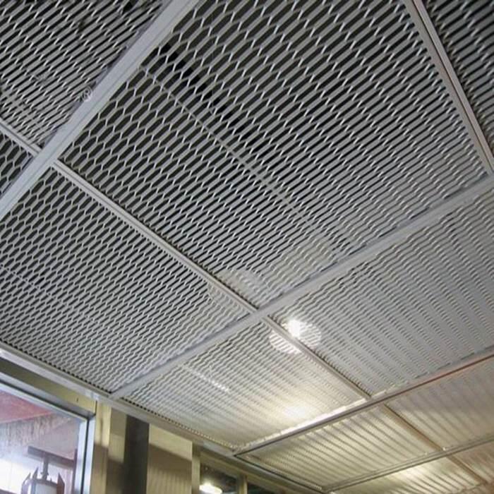 阿鲁倍特生产的拉伸铝网系列产品,采用先进的电脑数控冲剪拉伸一体机 ,可冲制各种图案 , 并且一次性制作成型。铝拉网天花吊顶饰面是一个较好的选择,透过规律排布的网洞,隐约看到顶面内部的管线及板底、梁底等等,给人一种朦胧美感。