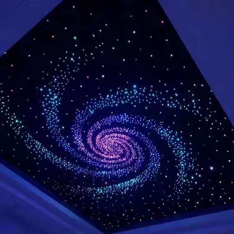 光纤照明可以创造出水晶星空、十二星座、流星雨、星空风瀑;流水瀑布、光纤幕墙、垂帘、三维立体镜画;造型吊灯、星光大道,光晕轮廓等绚烂多彩的效果。色彩柔和, 如梦如幻, 精美典雅, 给你以浪漫,温馨的氛围,放松你疲惫的身心,是美的照明表现手段