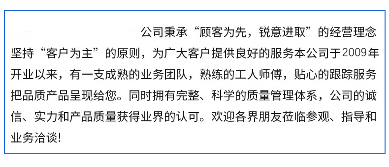 3.终身提供配件辅材更换,提供技术支持(收费)。