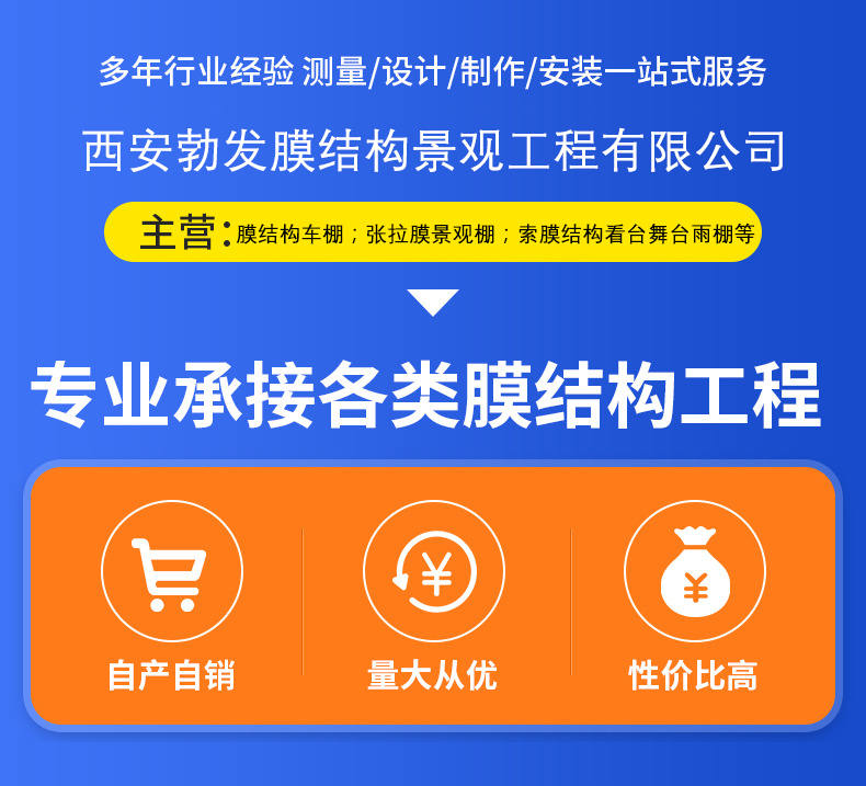1.陕西省内的,膜结构、张拉膜厂家可以专车送货上门安装,其他远的城市选择物流配送。