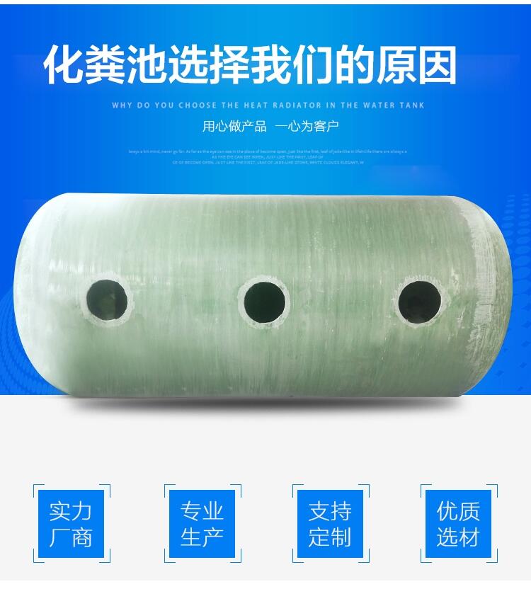 玻璃钢化粪池密封性能好,能高效处理粪便,厌氧腐烂效果优于传统化粪池2倍以上。