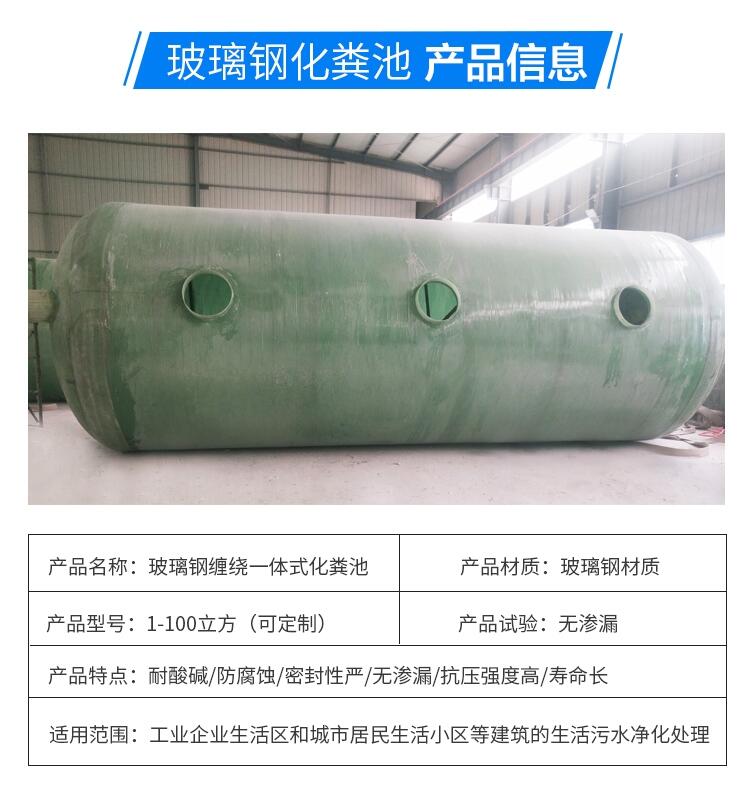 玻璃钢化粪池采用新型材料玻璃钢制造,耐老化、耐酸碱,使用寿命长达50年以上。