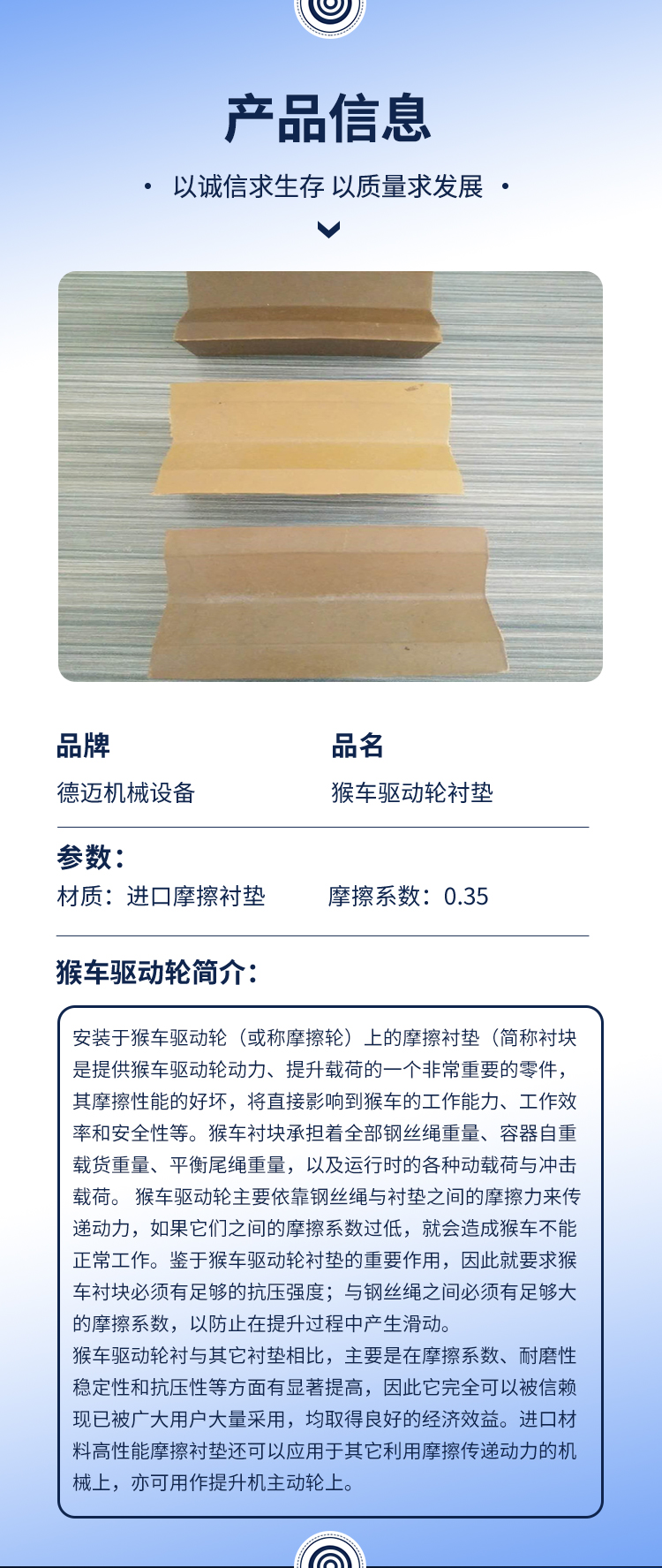 材质 | 进口摩擦衬垫 | ||