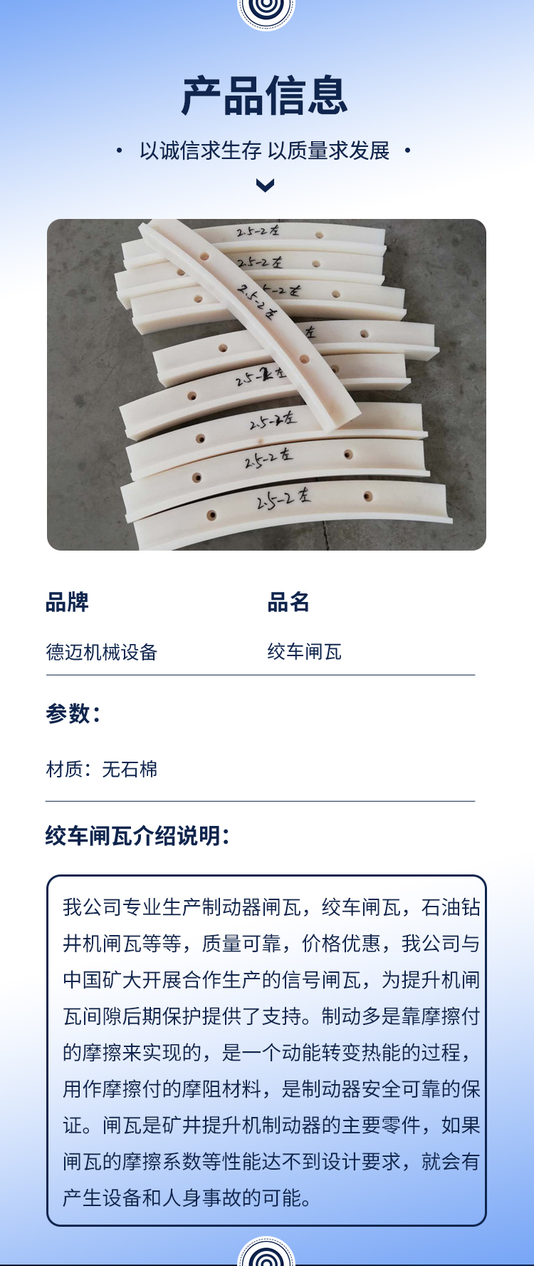 制动器矿山用闸瓦卷扬机盘形闸制动闸板支持定制德迈直供