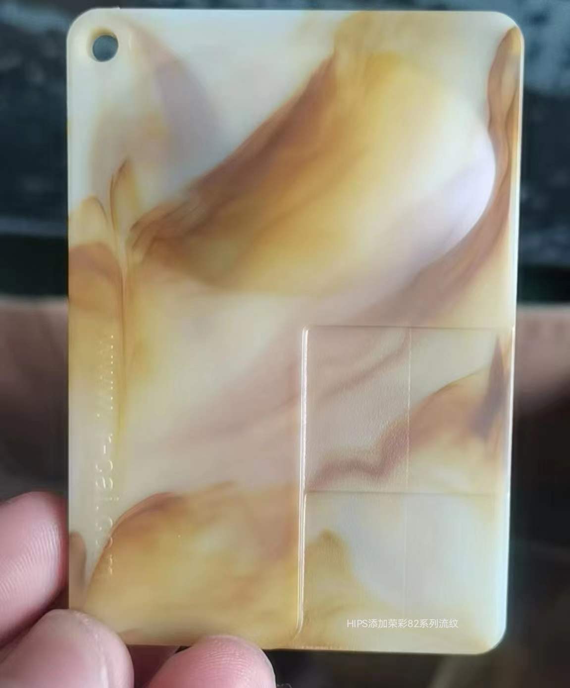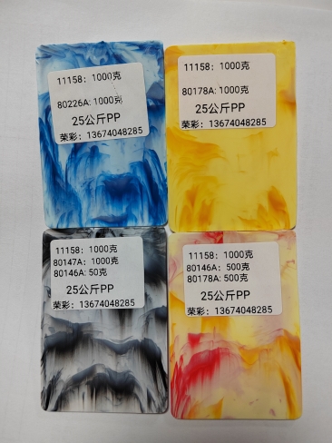 荣彩流纹射嘴专为解决流纹色母在使用中出现的不足,例如:没有纹路、起点、纹路散开等,可完善流纹效果