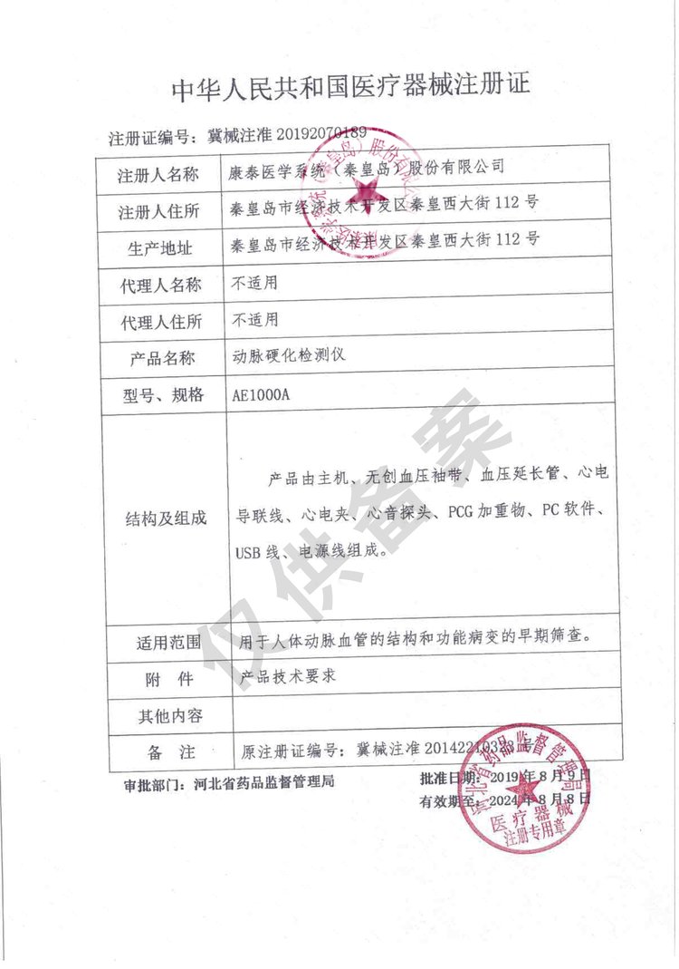 适用范围 | 动脉血管结构和功能病变的筛查 | ||