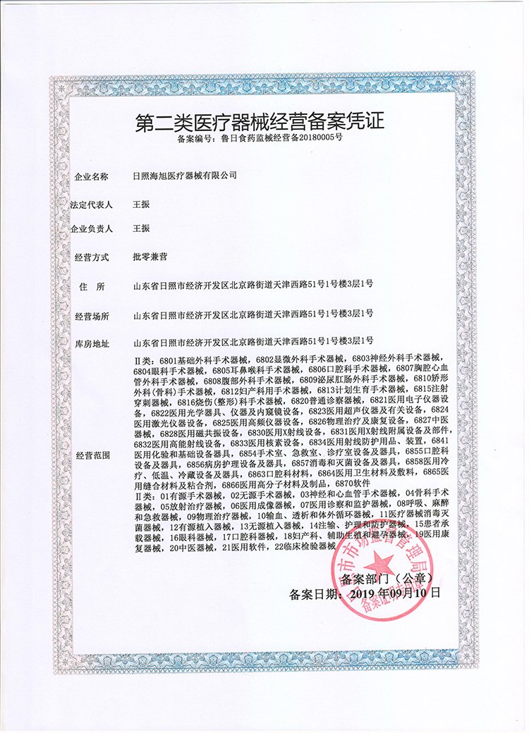 厂家 | 日照海旭医疗器械有限公司 | ||