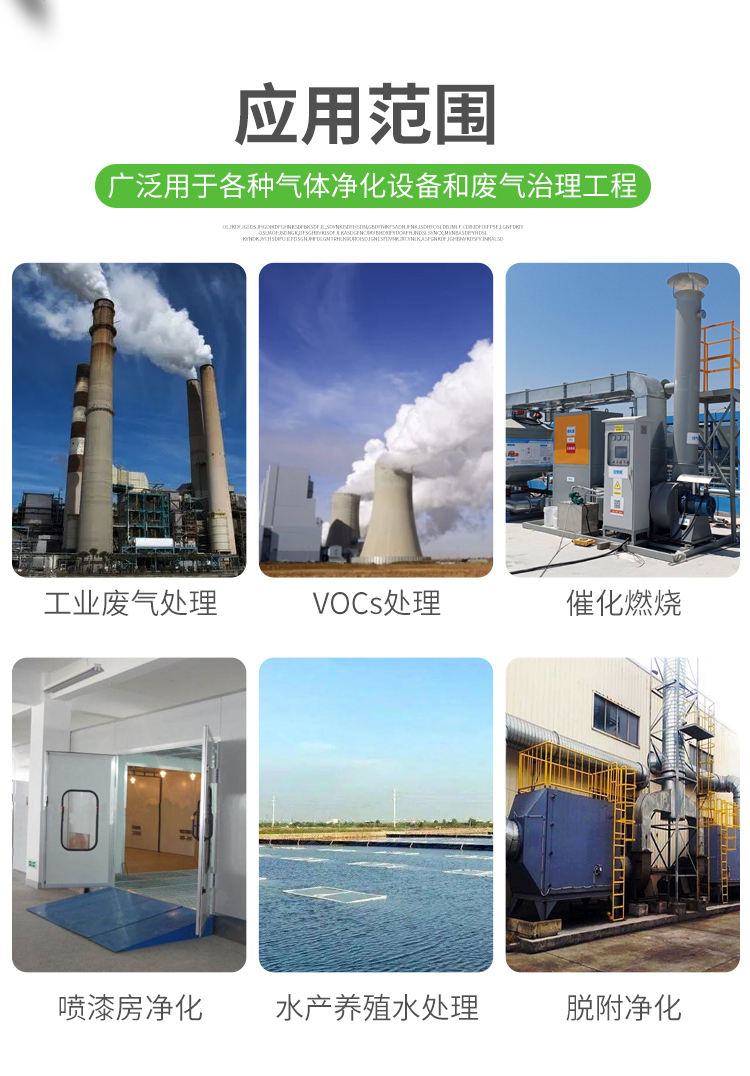 用途范围 | 废气净化、VOCs吸附、催化燃烧 | ||