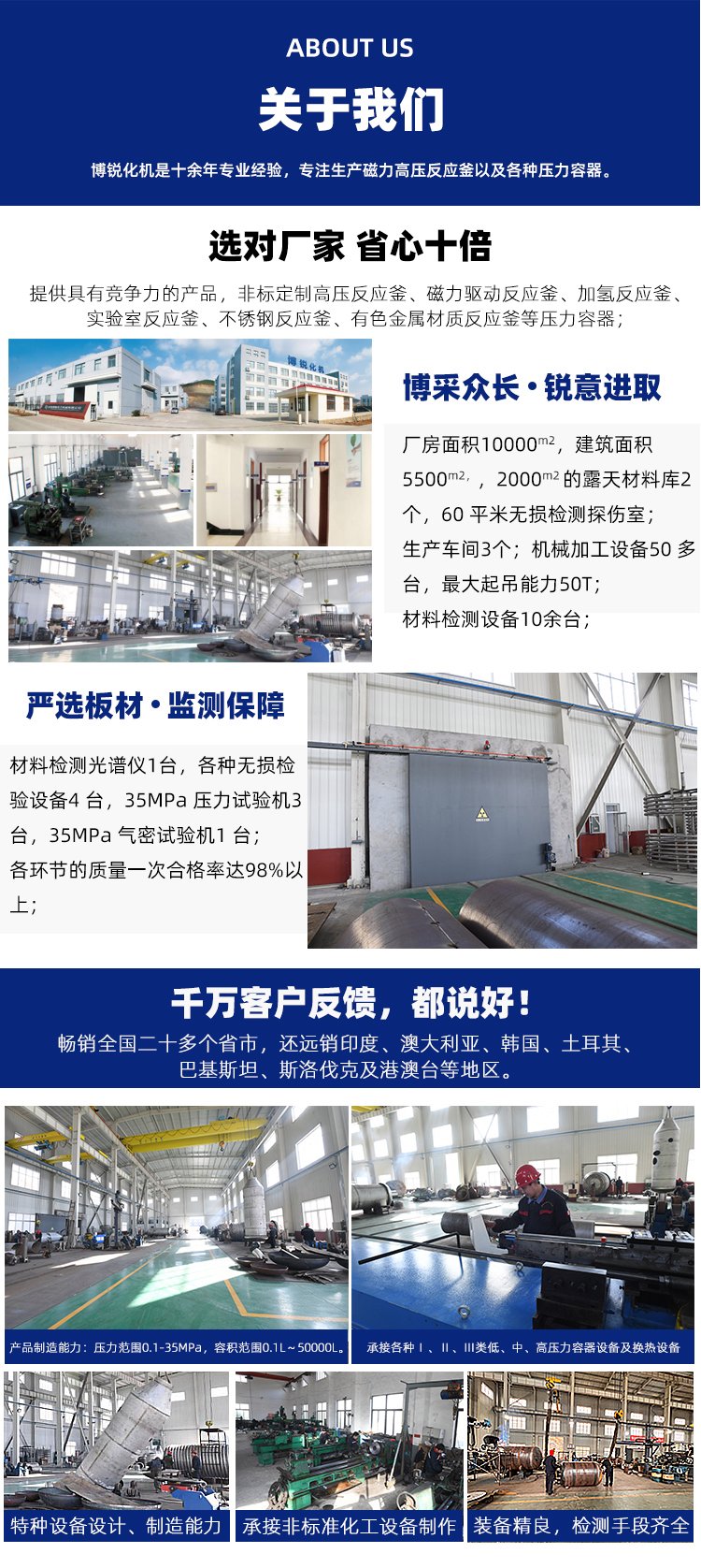 其他配置 | 如果用户在釜盖、釜体开口、内部结构、压力高低、搅拌桨叶、及增加其它附助装置(如冷凝回流装置、恒压加料罐、接收装置、冷凝器等)等有特殊要求,可完全按照用户的要求加工制造。 | ||