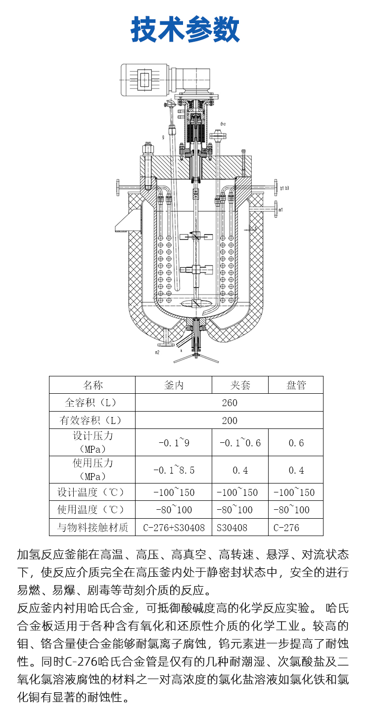 釜内工作压力 | -0.1~8.5Mpa | ||