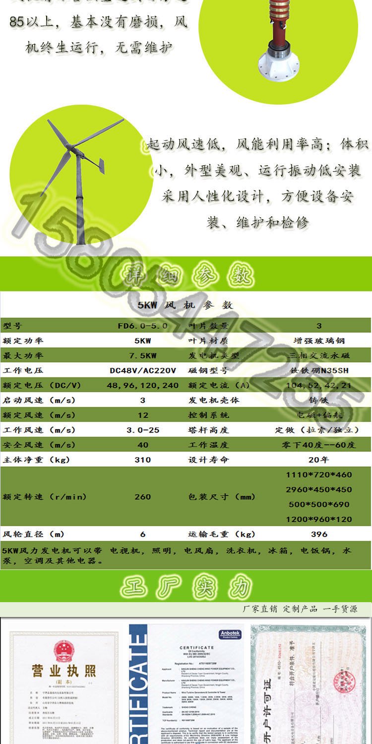 风轮直径 | 6m | ||