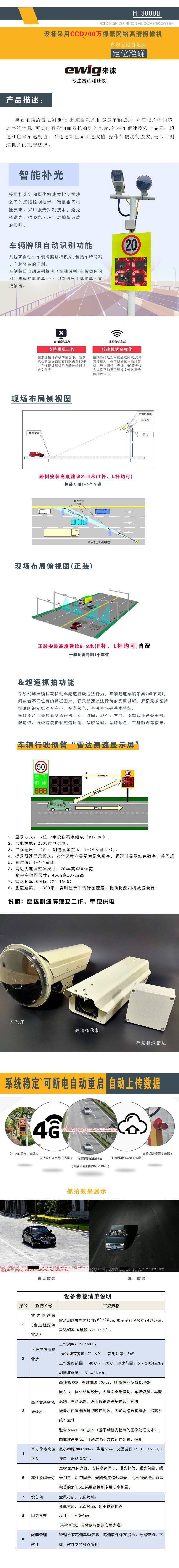 设备名称:固定式雷达测速抓拍一体机? ? ?设备型号:HT3000-D