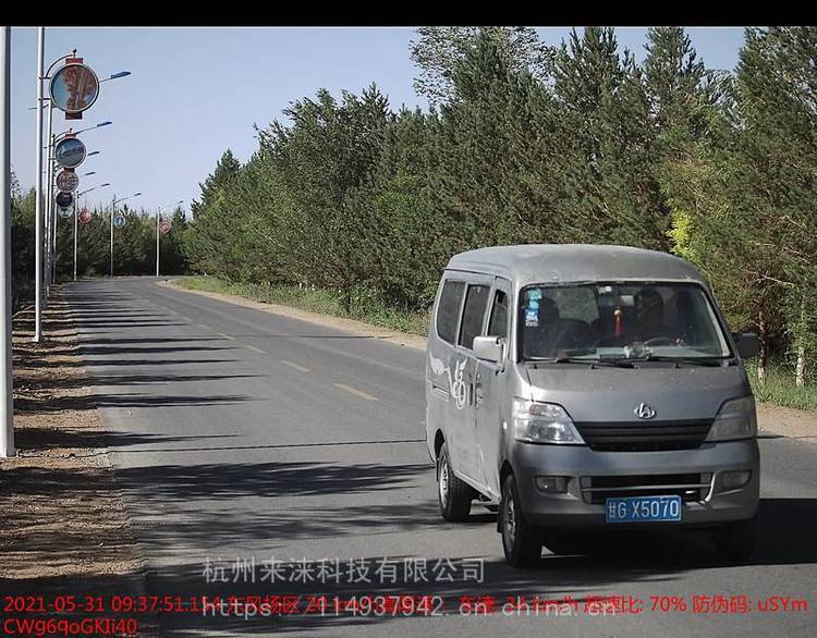 4、摄像机抓拍的图片上自动叠加上抓拍时间、违法地点、行驶方向、限速、行驶速度、超速比等信息,无须电脑协作,支持自定义叠加的字符信息。