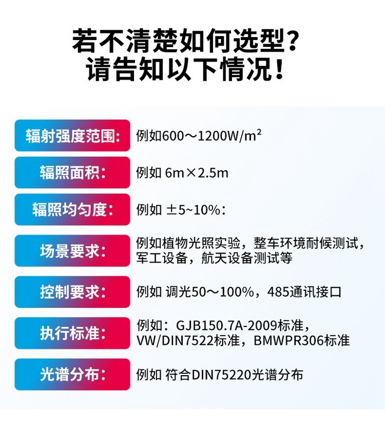 输出太阳光 | 700-1300W/m2 连续可调 | ||