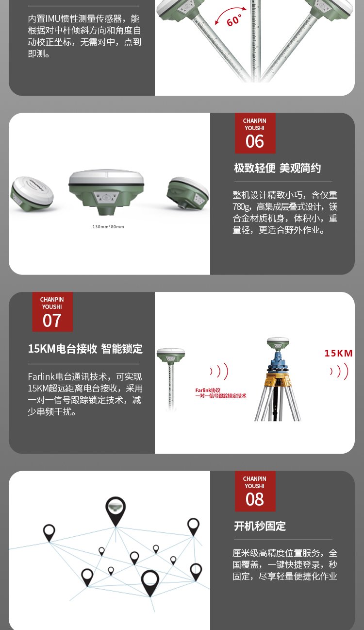 应用场所 | 地形放样,土石方测量,面积测量 | ||