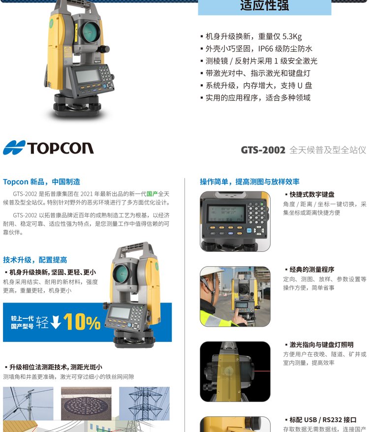 拓普康全站仪GTS-2002免棱镜500米工程测量快递测点高精度测绘