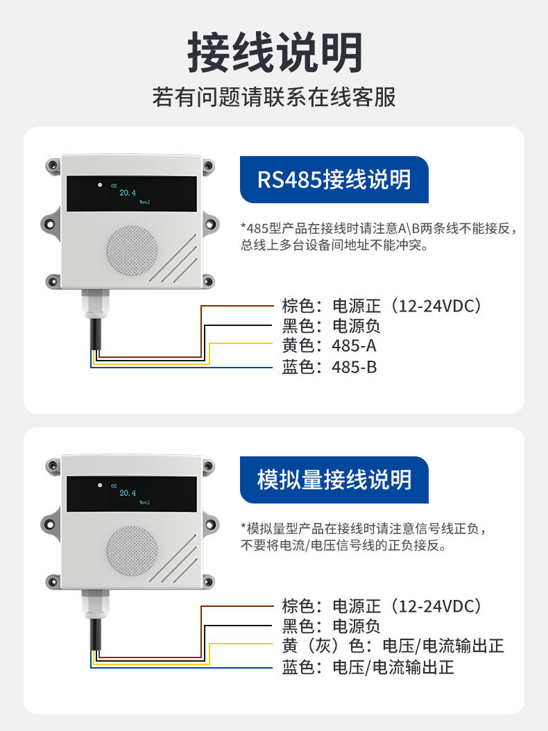 有毒气体检测仪CO2浓度4-20mA输出带485二氧化碳变送器
