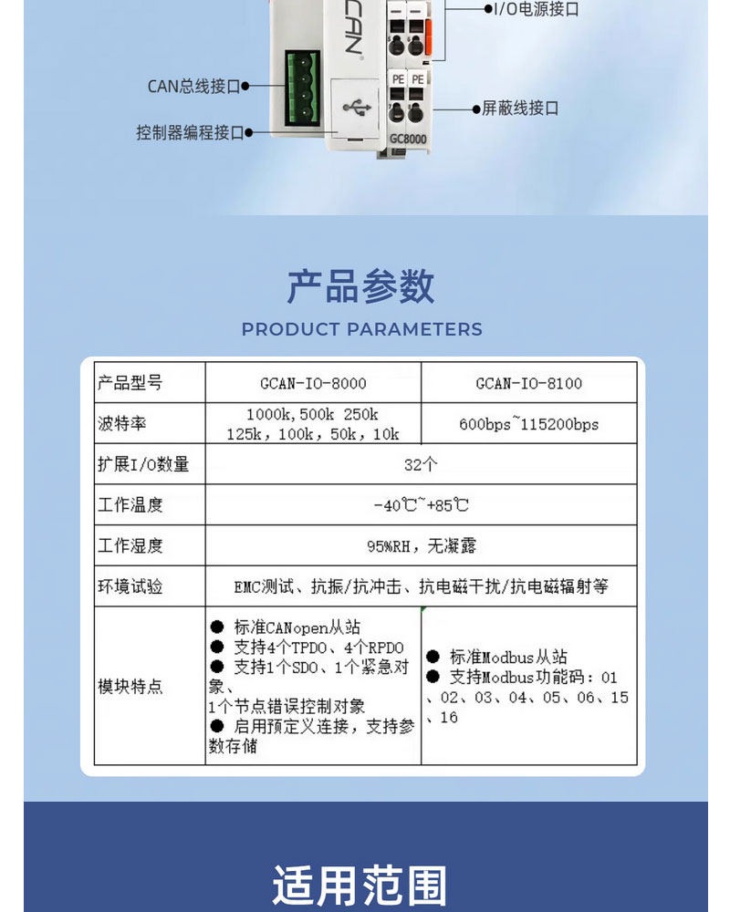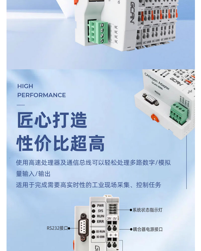 广成科技CANopenPLCIO扩展用组合式耦合器GCAN-8000