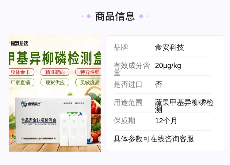 用途范围 | 蔬果甲基异柳磷检测 | ||
