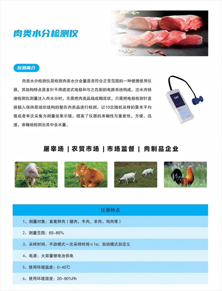 适用范围 | 肉类生产企业、农贸市场、质量监督、卫生防疫、屠宰厂等 | ||
