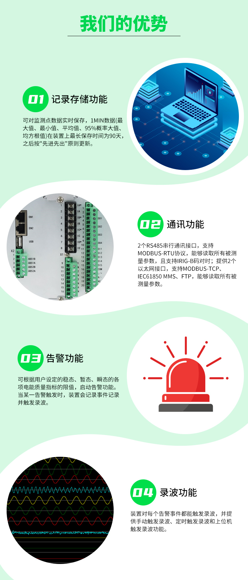 用途范围 | 光伏/储能/风电等新能源发电系统的电能质量监测 | ||