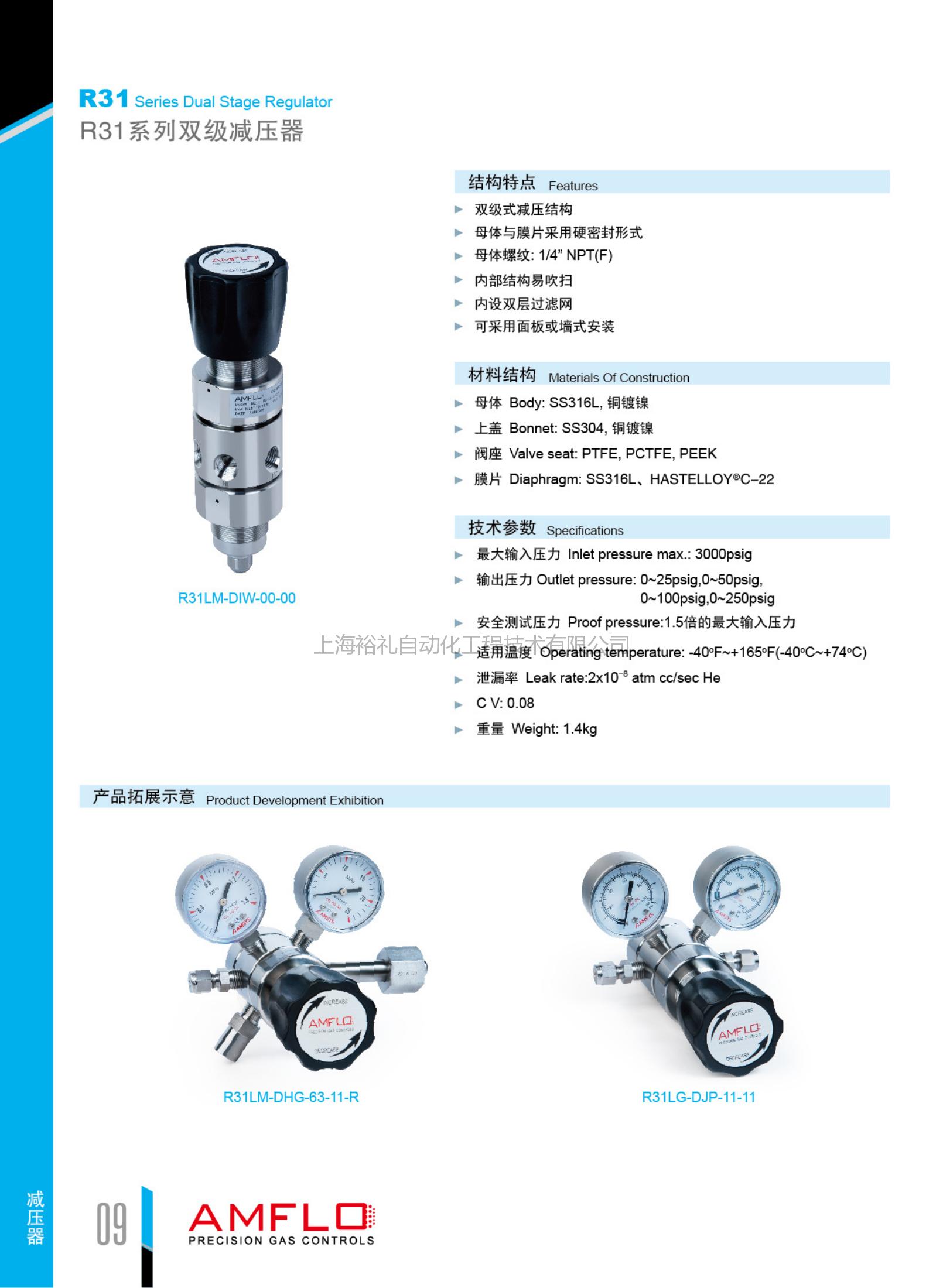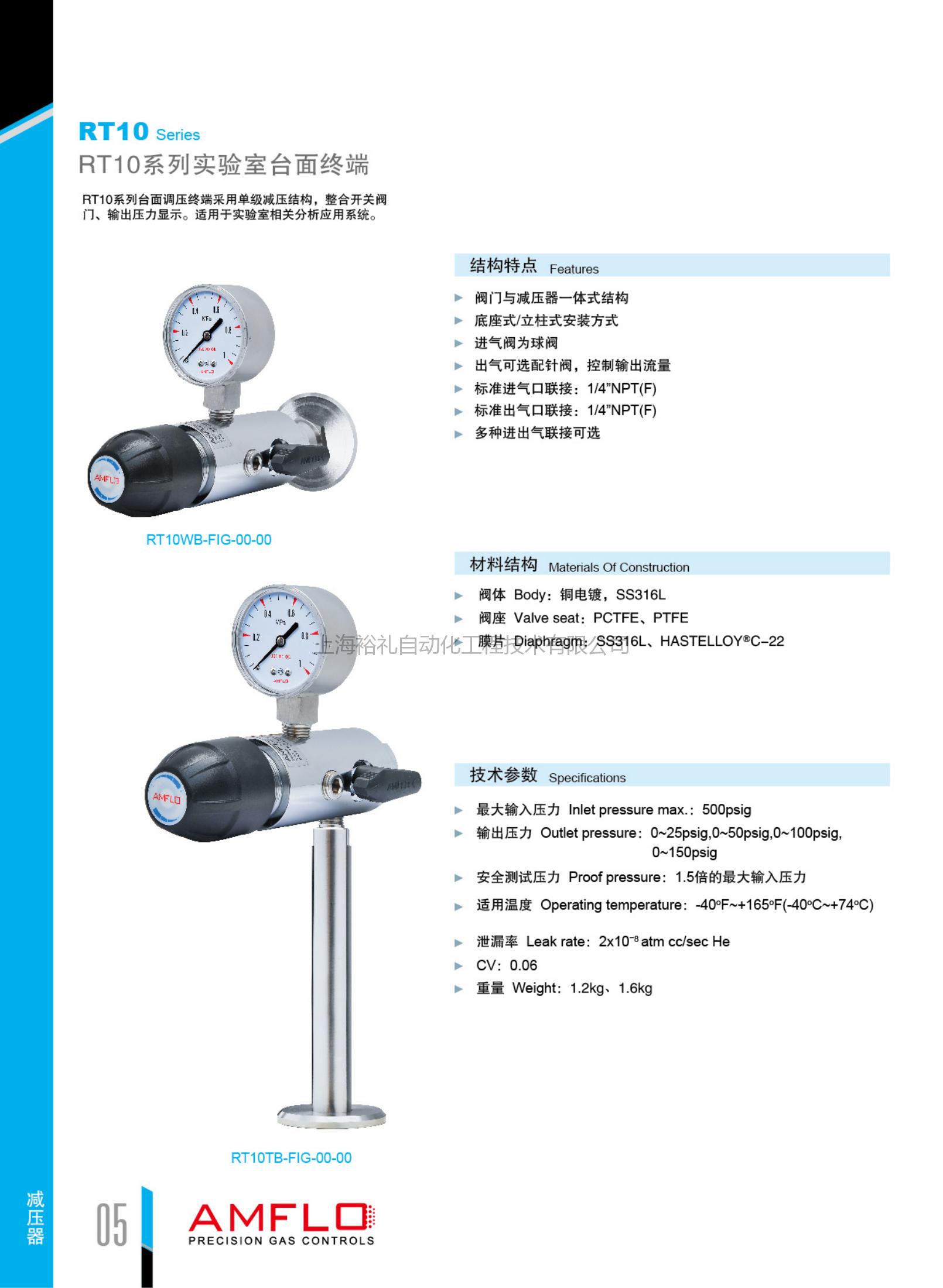 实验室不锈钢一级二级AMFLO气体减压器终端减压装置管路减压阀