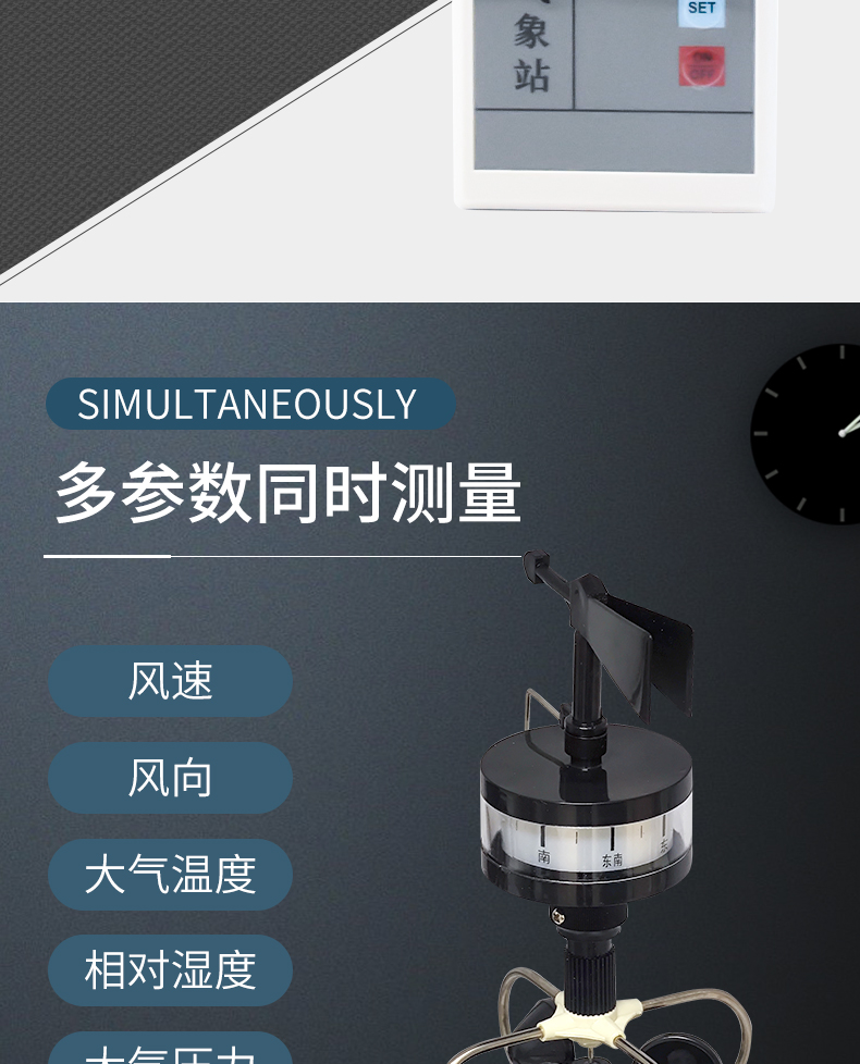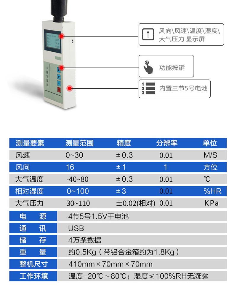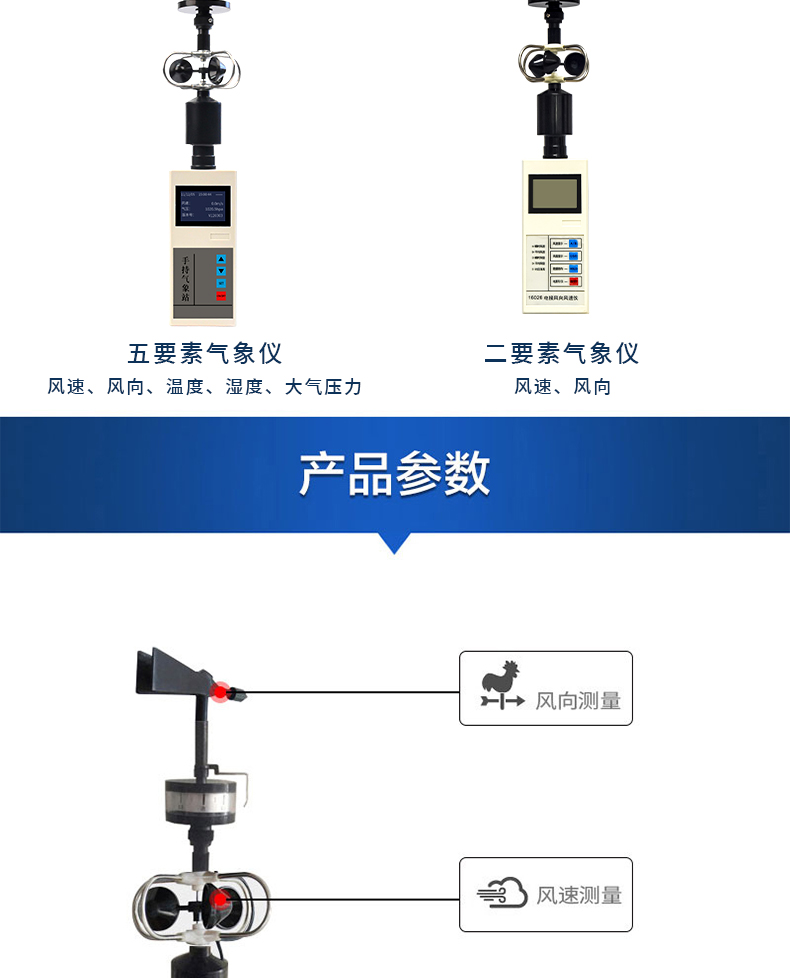 测量对象 | 风速风向、温湿度、大气压 | ||