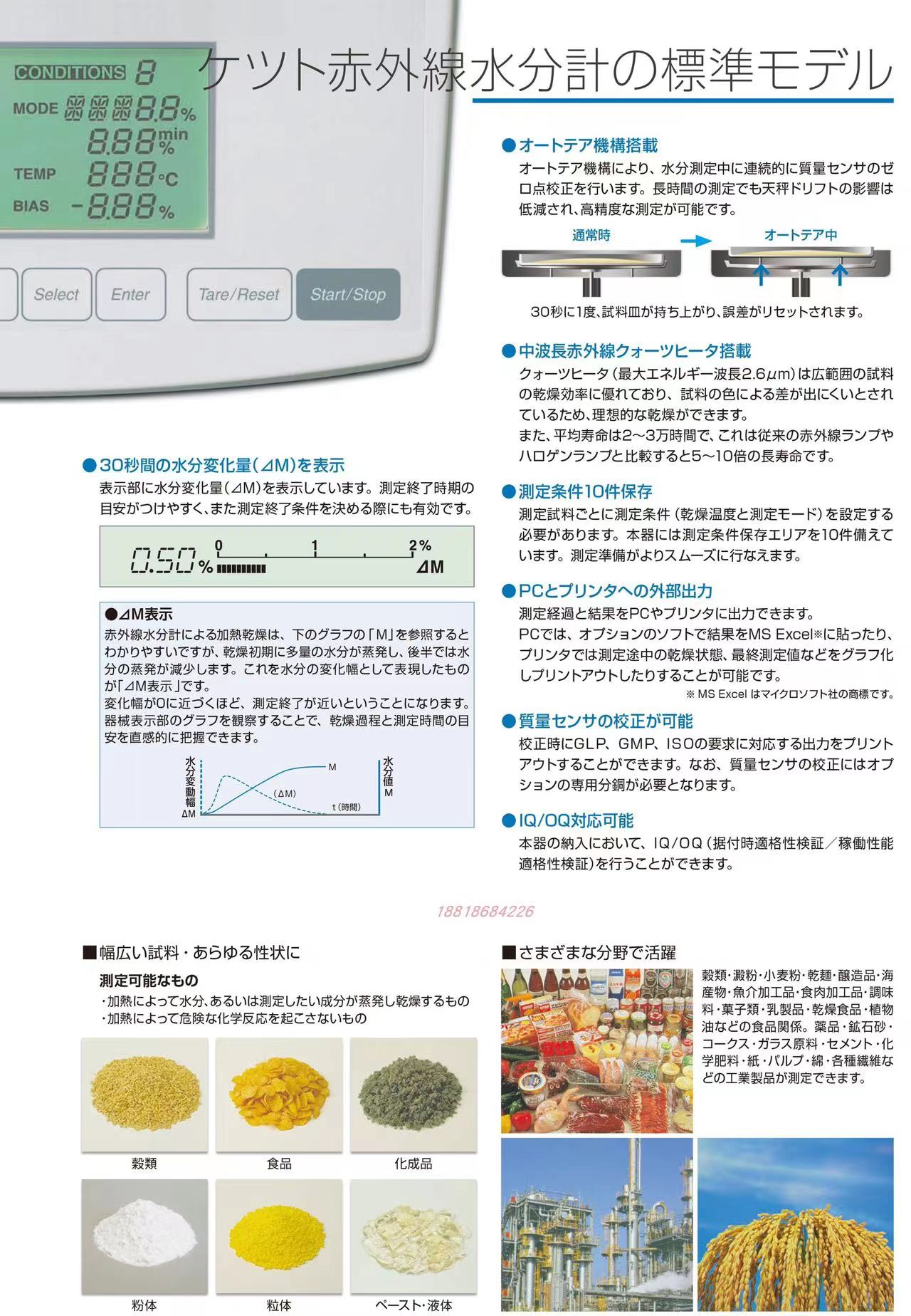 日本kett凯特红外水分检测仪烘干法水分测定仪FD-720