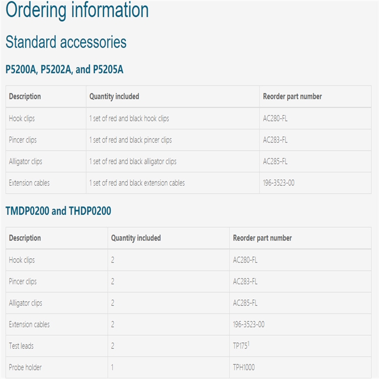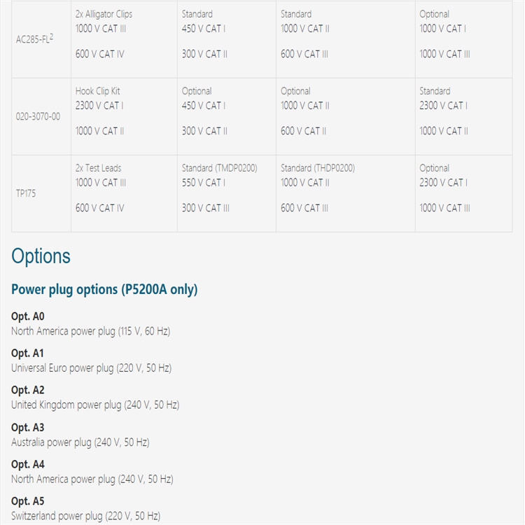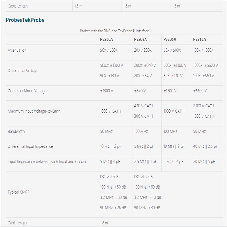 For safe operation, do not use the P5200A High-voltage Differential Probe with oscilloscopes that have floating inputs (isolated inputs), such as the Tektronix TPS2000 and THS3000 Series oscilloscopes. The P5200A High-voltage Differential Probe requires an oscilloscope or other measurement instrument with grounded inputs.