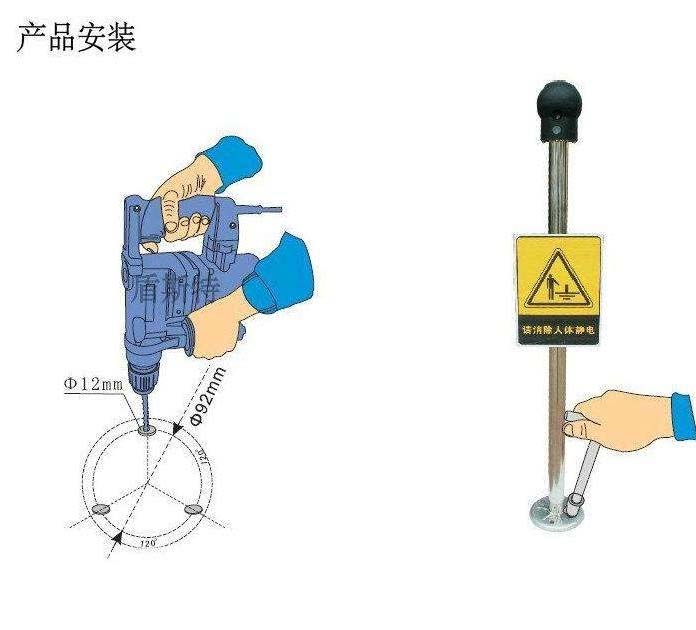 加油站、卸油口、储罐的上罐扶梯入口处、泵房门外等需要消除人体静电的场所(如电子厂、电脑机房、化工品厂房入口处等)