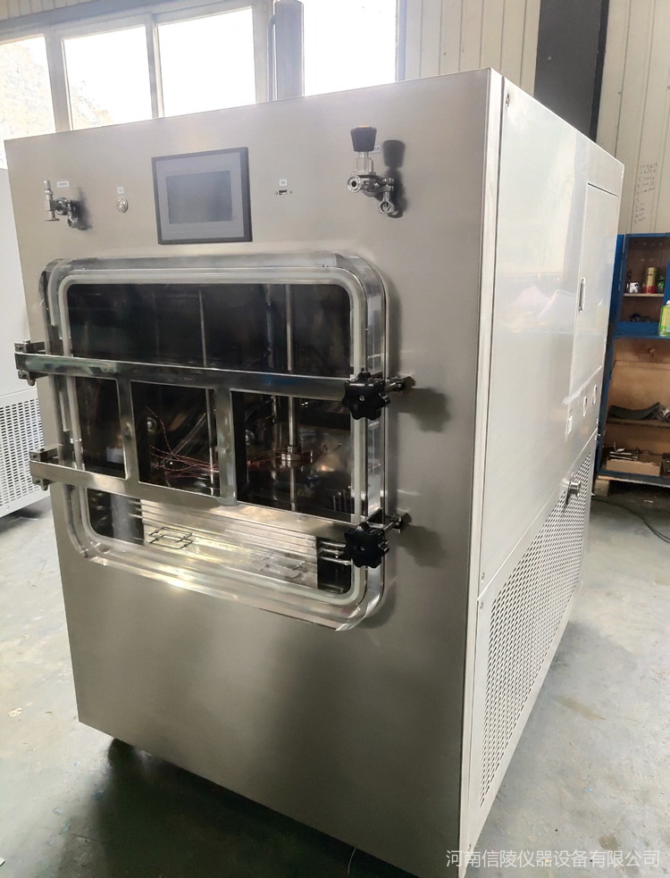 LGJ-50F(硅油加热)压盖型冷冻干燥机,是河南信陵仪器设备有限公司生产的中试型自动压塞冻干机,同系列的还有LGJ-100F自动压盖冻干机(1平方)、LGJ-30F硅油型冻干机(0.3平方)、LGJ-20F压盖型冷冻干燥机(0.2平方);大批量生产型5平方冷冻干燥机、10平方压盖冷冻干燥机、20平方压盖冷冻干燥机等。不仅可冻干胶原蛋白、化妆品、生长因子、修复多肽等冻干粉,还可以应用于诊断试剂、体外诊断试剂、胶体金、酶标板、生命科学、生物制药等领域的冻干。
