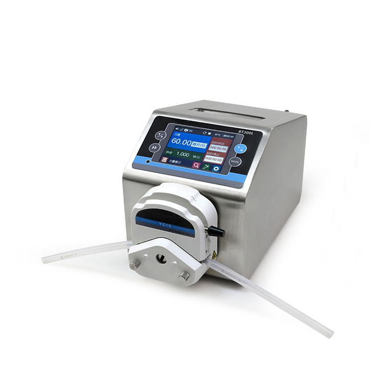 BT300L流量型智能蠕动泵可实现高精度的持续传输控制和简单的定量传输。4.3寸高清液晶触摸屏显示及操作,更快的微处理器,操作简捷,功能强大;支持APP软件,可对泵远程控制,并对运行状态实时监测;新增延时启动或停止流量控制过程,满足复杂的传输要求;RS485通讯在MODBUS基础上增加更多的设定,适应不同通讯设备要求。