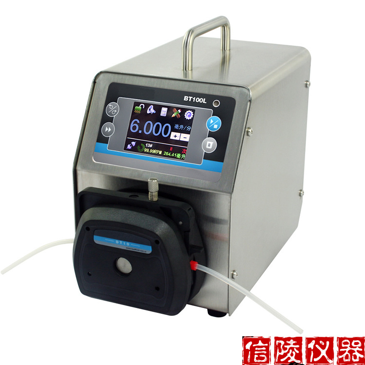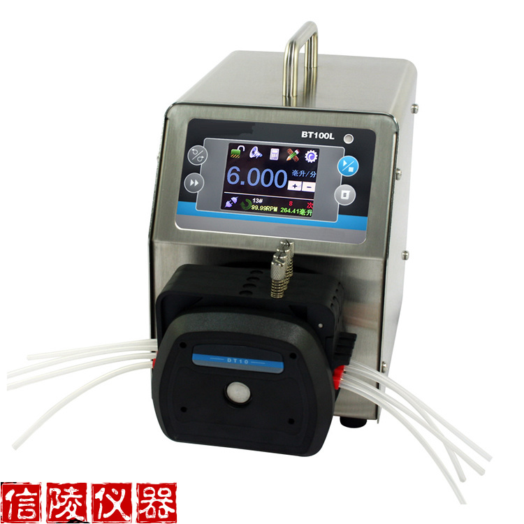 BT100F分配型智能蠕动泵采用更新更快的进口微处理器,配合大扭矩步进电机,传输精度更高;4.3寸高清液晶触摸屏显示及操作,简洁便利;具有可编程功能,可预设30组运行参数,完成复杂的控制过程;多种工作模式可选,功能强大,是实现液体定时定量传输及分装的良好选择。