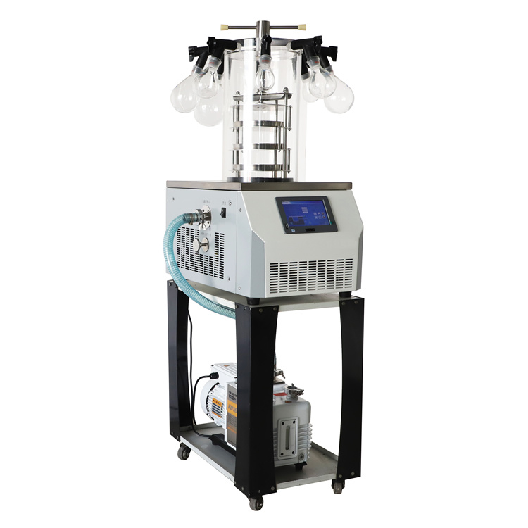 LGJ-10B压盖型实验型真空冷冻干燥机不仅适用于散装(液态、糊状、固态)常规物质的冷冻干燥,还适合西林瓶装物料的干燥,冻干准备时,按需要将物料分装在西林瓶中,浮盖好瓶盖后进行冷冻干燥,干燥结束后操作压盖装置压紧瓶盖,可避免二次污染、重新吸附水分,易于长期保存。广泛用在医学、制药、生物研究、化工和食品等领域。经冷冻干燥处理的物品易于长期保存,加水后能恢复到冻干前状态并保持原有生化特性。LGJ-10B冷冻干燥机,适用于实验室使用,可满足大多数实验室常规冻干的要求。