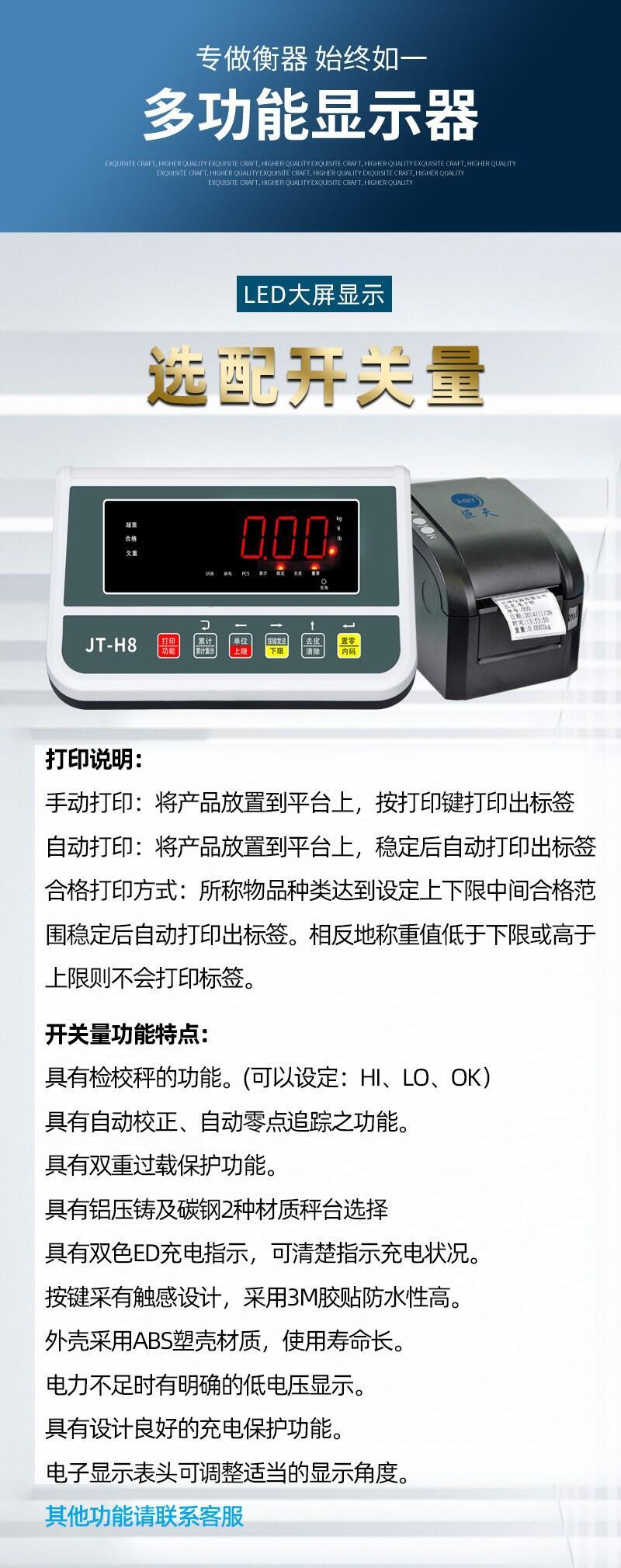 巨鼎天衡JT-H8电子秤功能特征:
