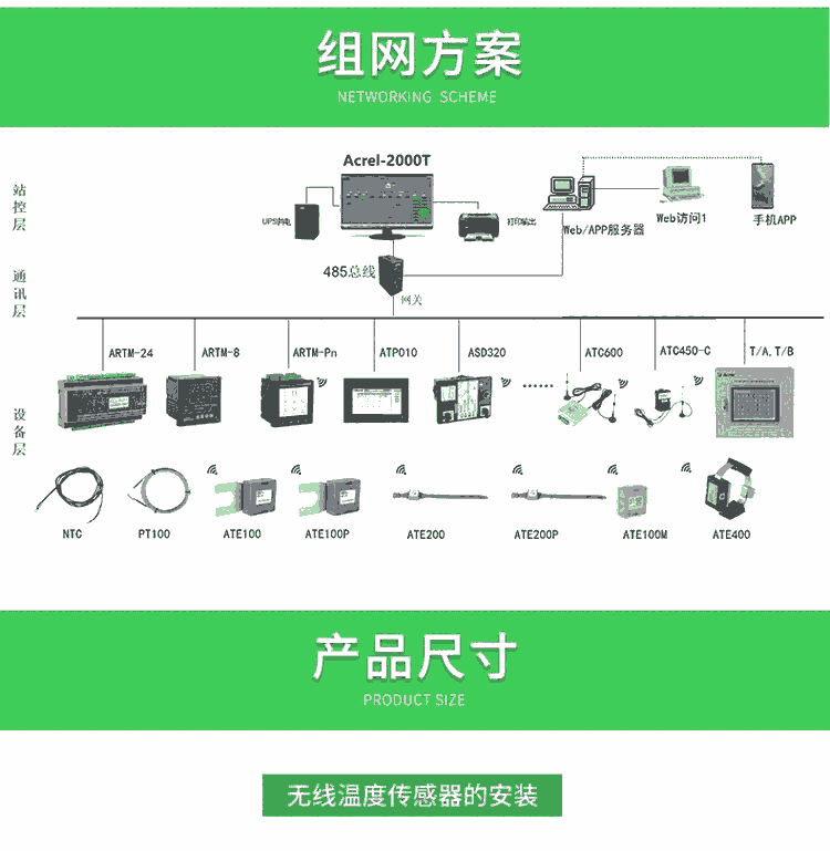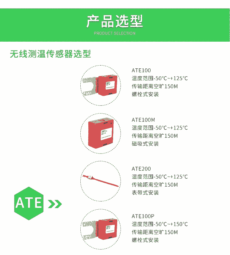 安科瑞表带式测温传感器ATE200 母排测温 无线数据传输