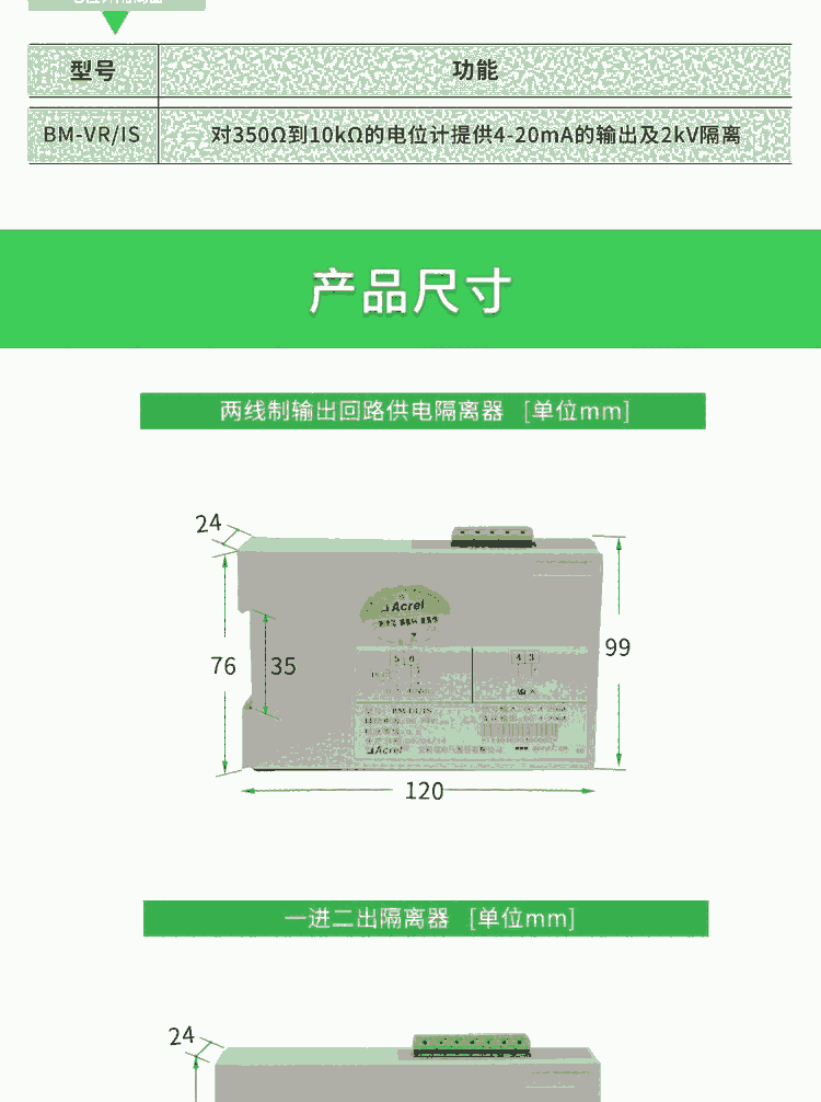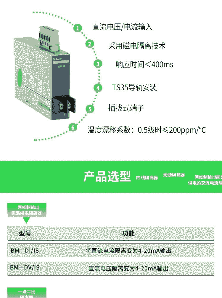 安科瑞BM-DI/II 电流隔离器 一进二出隔离器 输出两路4-20mA